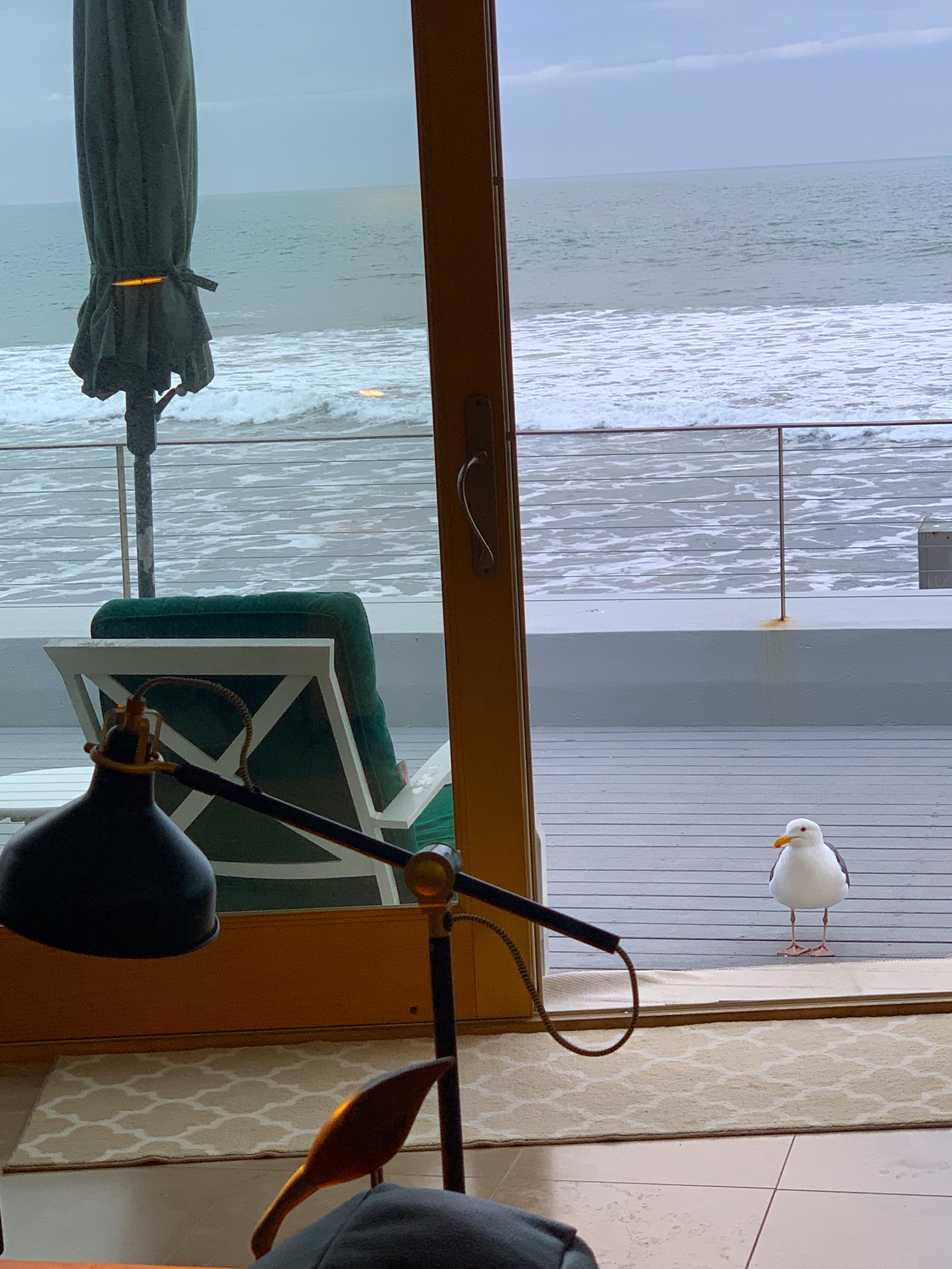 Mostly, we are silent as I sit under my umbrella and he on his rail. I suspect he’s seen a lot in his years, my bird and when the sun finally starts to set and all the other gulls fly away, he’s always the last to go to wherever it is he goes when he leaves me.